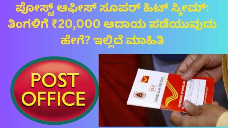 Post office ಸ್ಕೀಮ್‌ನಲ್ಲಿ ಹೂಡಿಕೆ ಮಾಡಿದ್ರೆ ತಿಂಗಳಿಗೆ ₹20,000 ಆದಾಯ! ಸಂಪೂರ್ಣ ಪ್ಲಾನ್ ಇಲ್ಲಿದೆ