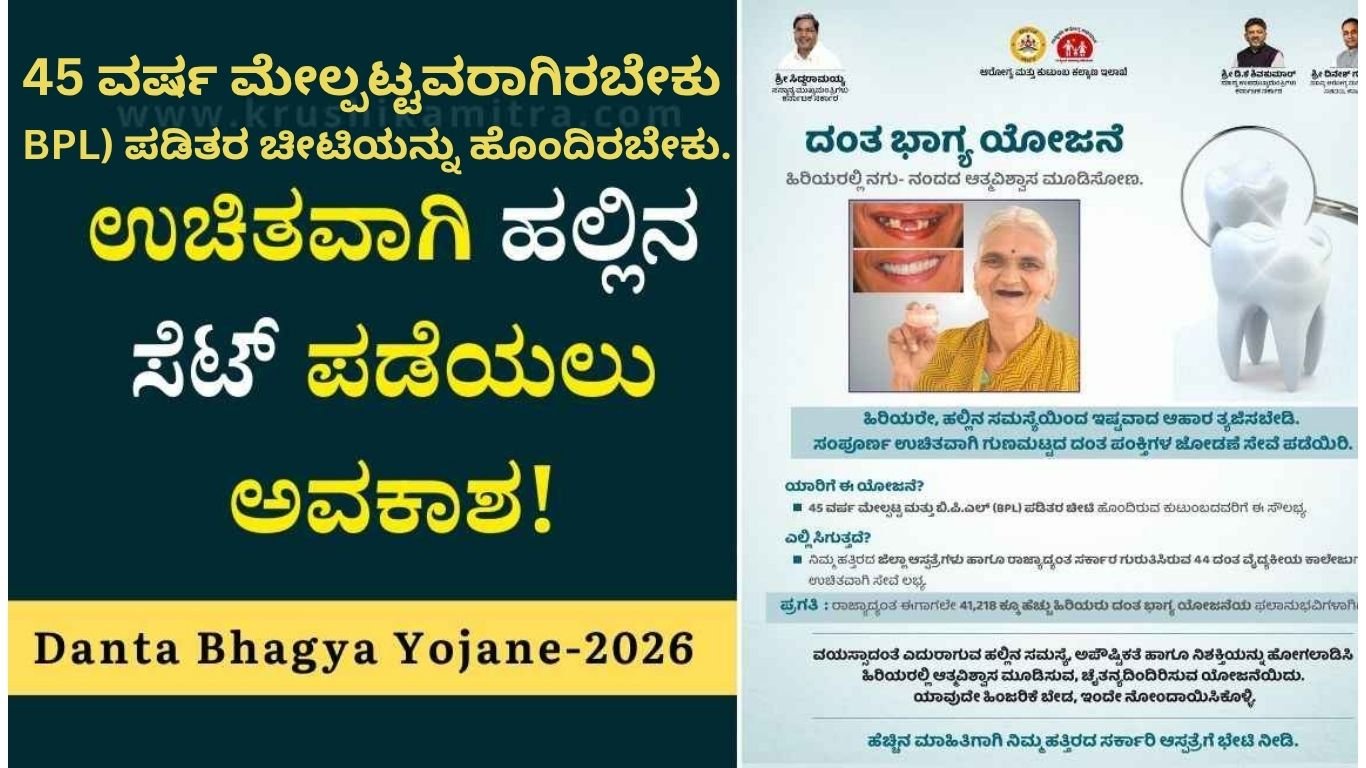 ಹಿರಿಯ ನಾಗರಿಕರ ಜೀವನದ ಗುಣಮಟ್ಟದ ಮೇಲೆ ದೊಡ್ಡ ಪರಿಣಾಮ ಬೀರುತ್ತವೆ. ಇದನ್ನು ಗಮನದಲ್ಲಿಟ್ಟುಕೊಂಡು ಕರ್ನಾಟಕ ಸರ್ಕಾರ ‘ದಂತ ಭಾಗ್ಯ’ ಯೋಜನೆಯನ್ನು ಪರಿಣಾಮಕಾರಿಯಾಗಿ ಜಾರಿಗೆ ತಂದಿದೆ. ಈ ಯೋಜನೆಯಡಿ ಬಡತನ ರೇಖೆಗಿಂತ ಕೆಳಗಿರುವ (BPL) ಹಿರಿಯ ನಾಗರಿಕರಿಗೆ ಸಂಪೂರ್ಣ ಉಚಿತ ದಂತ ಚಿಕಿತ್ಸೆ ನೀಡಲಾಗುತ್ತಿದೆ.