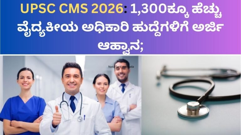 UPSC CMS 2026 ನೇಮಕಾತಿ: 1,300+ ವೈದ್ಯಕೀಯ ಅಧಿಕಾರಿ ಹುದ್ದೆಗಳು – MBBS ಪದವೀಧರರಿಗೆ ದೊಡ್ಡ ಅವಕಾಶ